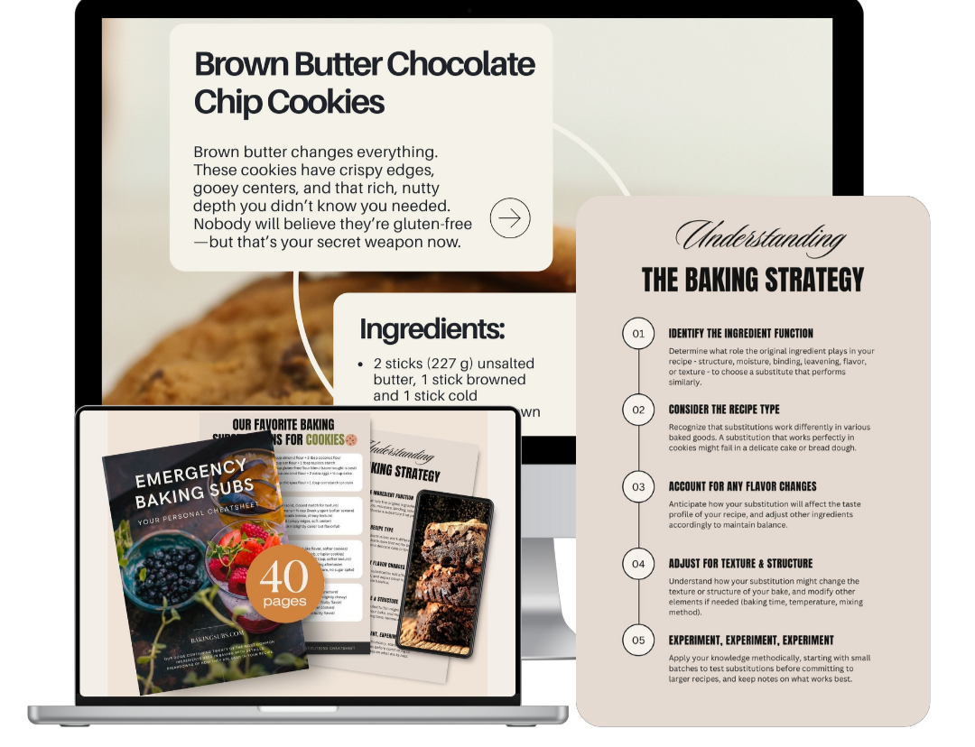 What started as a substitution guide grew into something bigger: a complete system that teaches why gluten-free baking works — so you can stop wasting money, stop guessing, and actually enjoy baking again.