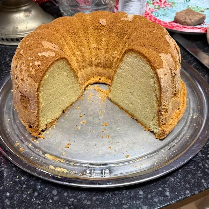 First cream cheese pound cake that is gluten free, would not know it's gluten free. It turned out very good. Thanks Malik & Maddy.